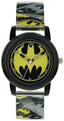 Disney boys Batman watch with black plastic Case, Batman logo dial, Batman printed strap and traditional buckle fastening. Supplied on a Batman branded gift card.