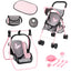Contains: 1 x Doll's Stroller, 1x Shoulder Bag, 1x Plate with Cutlery, 1x Drinking Cup, 1x Bib and 1x Changing mat.