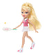 Contains: 1x Bratz Play Sportz Doll, 1x top, 1x skirt, 1x pair of shoes, 1x tennis racket, 1x tennis ball, 1x brush, 1x doll stand.
