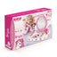 Contains: 1x Dolu Table Top Vanity Set With Mirror and Accessories Including 2x Lipsticks, 1x Blow Dryer, 2x Perfumes, 1x Eyeshadow, 2x Hairpins, 2x Combs and 2x Blush Brushes