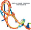 Kids flip a manual diverter to choose between a vertical U-turn with two stunt jumps or a figure-8 path before landing in a catch cup with a big finish. It includes 1 Hot Wheels vehicle and connects to other sets.