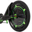 The sleek steel frame comes in Green Machine green, and features LED lights beneath the seat and in the rear wheels.