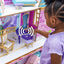 There are so many unique rooms to visit—the garden area with fountain, the curved balcony plus the rooftop garden terrace that can be reached by ladder. Each place awaits magical stories to be made in them. Fully furnished with royal accessories and lights and sounds help bring the palace to life. The lamp lights up, the toilet makes flushing noises, and the piano plays music.