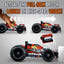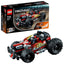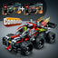 Experience the amazing power and acceleration of this rugged, high-speed LEGO Technic 42073 BASH race car model, featuring a red, black and gray color scheme with racing stickers, sturdy front bumper, large rear spoiler and wide black rims with low profile tires.