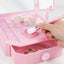 Contains:1x Mirrored vanity with drawer, 2x eye shadow palettes, 2x Nail polish, 3x lip gloss, 1x blush brush and 1x nail file
