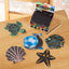 Scratch away the black coating to reveal 5 colourful patterns underneath. Includes 125 notes in 5 ocean-themed shapes (fish, turtle, sea star, shell, and whale), wooden stylus for etching, handy desktop dispenser
