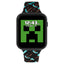 Minecraft interactive watch with printed silicone strap. The touch screen watch features: 10 watch faces (5 analogue and 5 digital), selfie photo/video camera, games, music player, fitness tracker, alarm/stopwatch/timer, voice recorder & calculator.  USB cable supplied for charging and data download.