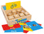 Lift up 1 of the 30 word picture cards and place in the slot provided. Next use the 8 wooden letter blocks to find the letters needed to spell out the word of the picture on the card.