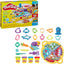 Contains: Unassembled Playmat, Fun Factory Tool, Octopus Tool, 4-sided Stamper Cube, 12x Cutters, Scissors, Knife, Roller, Decorating Tool and 4x Cans of Play-Doh Brand Modelling Compound (net weight 227 grams/8 ounces).