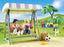 This will be a huge fun. The playset consists of three Playmobil children's figures and a clown figure, a hammock swing, a folding table with cups and muffins, gifts, balloons and many other party accessories. The girl figure wears a silicone skirt that can be put on and taken off.