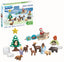 Reindeer airplane with three elements for attaching and combining. Six stackable footprint stones with control image on the underside. Nine forest animals. Fir tree with hiding place. Star with spinning function. Two angels and one Santa Claus designed for our youngest Playmobil fans!