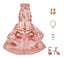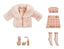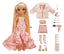 Sabrina comes dressed in a gorgeous ball gown with embroidered sequins + taffeta details, matching rose-quartz heels, satin ribbon belt with RH charm, hair clips, and matching jewelry. She also comes with a second complete outfit for mix and match fun. Matching tweed set (top & skirt) with embroidered rose-quartz sequins, faux fur jacket, ankle sheer socks, and platform heels.