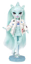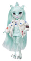 Introducing the Rainbow High Shadow High Zooey Electra Doll, as part of our range of Rainbow High dolls. Zooey Electra is light green from head to toe. She expresses her own style in a white jacket with fun patches, a seafoam green skirt with buckles, a cute printed t-shirt, wedge sandals, green socks, and fun accessories. And she has beautiful, long, straight green hair with 3 hair twist buns, long eyelashes, and glass eyes.