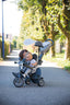 Built For Comfort and Safety The Baby Driver Comfort Plus combines safety, comfort, and fun in one versatile travel trike making it the ideal solution for all your walks! It now features a parking brake, higher headrest and is pushchair and stroller certified. A safety 5-point harness, protective rollbar and retractable footrests are included for additional security.Ā