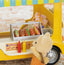 Contains: Hot Dog Van, Special shop manager uniform and sun visor, Menu,Two bottles of ketchup and mustard, A cup of orange juice and a cup of tea,Tong, Eight hot dog wrappers, Six snack wrappers, Three sausages,Three buns, Two pretzels, Five kinds of hot dogs, Two waffles, Rabbit-shaped waffle and squirrel-shaped waffle